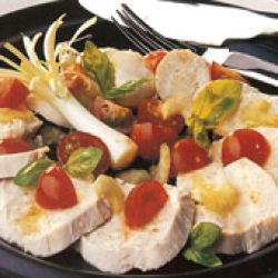 Carpaccio d'escalopes de poulet DIFFICULTÉ FacilePRÊT EN 15 min CUISSON 15 min ATTENTE PATE 2 h Nombre de convives : 4 pers VOIR LA RECETTE