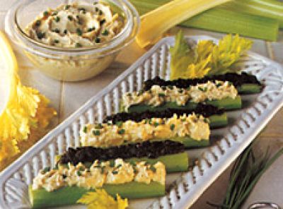 Les disposer sur un plat en alternant les branches farcies au roquefort et celles à la tapenade.