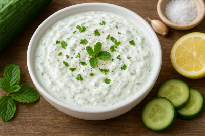 Ajouts pour plus de saveurs :Ajouter quelques tomates cerises coupées en dés pour un peu de couleur et de fraîcheur.Un peu de feta émiettée par-dessus pour un goût plus "à la grecque".Quelques olives noires tranchées, pour renforcer l’aspect méditerranéen.Version allégée :Remplace la crème fraîche épaisse par un yaourt nature 0% pour réduire les calories tout en conservant la texture crémeuse.Utilise un édulcorant naturel (comme le miel ou le sirop d'agave) si tu veux ajouter un goût sucré sans utiliser de sucre.Astuces pour la texture :Pour éviter que le concombre ne rende trop d’eau, tu peux le couper en dés plutôt qu’en lanières et le laisser dégorger dans une passoire plutôt que dans un bol.